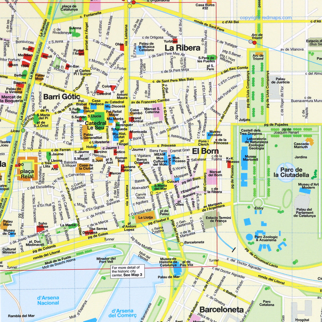 Historic Central Barcelona Street Map | Red Maps