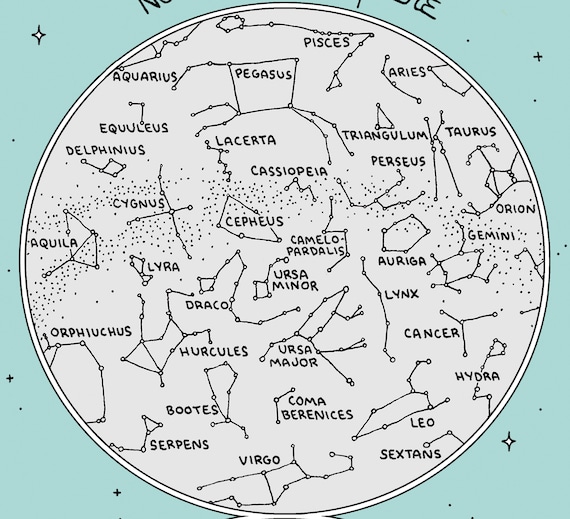 Map of the Constellations Star Chart Hand drawn Digital, Printable